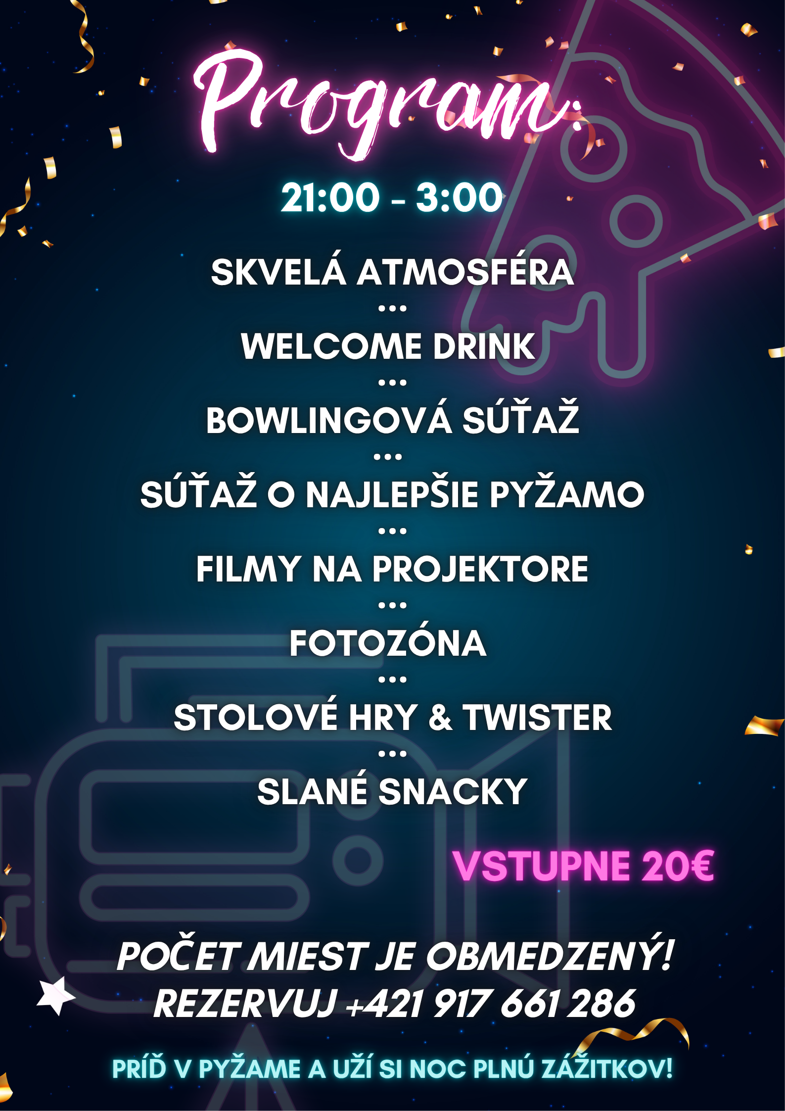 Zaži večer plný smiechu, filmov, bowlingu, snackov a zábavy – v tom najpohodlnejšom pyžame! 😍